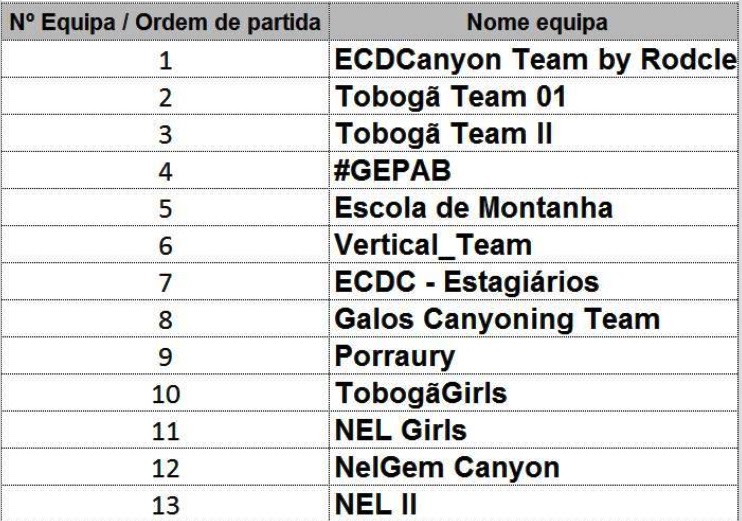 Ordem de partidas 2º Prova da TPCanyoning2017